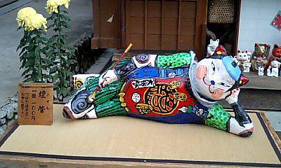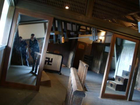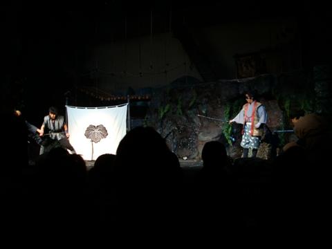 中層は「忍者屋敷」です。からくり屋敷とかあります。 ここでも呼び込みが!「これからお芝居やりま~す」 忍者物=アクション!てな訳で小屋へ・・・というか劇場です。ちゃんとした劇場。 ほぼ満席。敷地が広いので人に会わないのですが、結構いるんですねぇ。 で、忍者装束のおにーさんの前説。 「私、このお芝居には出ません!ここで出番は終わりです!!写真撮るなら今です!」と催促(笑) 上手いな~。 「上演中のビデオ撮影、カメラ、携帯での写真撮影は・・・大歓迎です!」呼吸のとりかたが上手い。 で芝居は登場人物5人。 伊賀の里に住む爺さんと弟子、幼馴染みの口が利けない女の子。対する敵は武田の生き残りと仕えてる忍者。 武田の生き残り(名前忘れた)が浅井長政から下肢された藤堂高虎所有の刀「兼光」を奪う目的と以前に爺さんに片目を奪われた復讐をしにやってくるのですわ。 いや~ここで浅井長政の名前を聞くとは思わなかった。 爺さんは殺されてしまうんだけど、その弟子が爺さんの死を乗り越え成長していく物語でした。んで女の子とくっつくのね。 忍者物だけあってアクションも面白かったです。刀持って転身受身出来るようになるといいねぇ~←他人事。 火薬も使ってて音の大きさにビビりました(笑) 芝居観た後はからくり屋敷に。酔いまくり・・・こういうの弱いのだった。 修行の館みたいなのがあって、覗いてみたのだけど・・・真っ暗! 突然ガラッと戸が開いて目が爛々と赤く輝く忍者が!! こ、怖い・・・怖気づいて退散致しました。 そーいや「首無し寺」というのがあって、殺された武将達が集ってるらしいのだが・・・ここも入り口からあまりにもあまりだったので入れませんでした。 人出が多かったら入ったと思うんですけどね・・・ホント人いないのよ。 どういうテーマパークなのか分からん。安土桃山文化村! この日のお昼は「伊勢うどん&松坂牛丼」 あと「さつま芋田楽」あれ?「さつま芋大学」?とにかく美味しかった。満腹!食べすぎですな。 PR